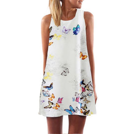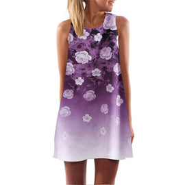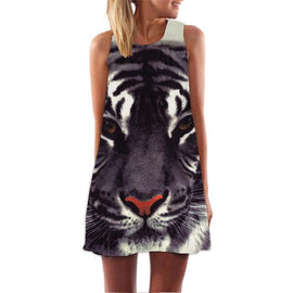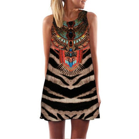 European Style Chiffon Dress Summer Casual Loose O-Neck Sleeveless Print Beach Dresses Plus Size Women Clothing WAIBO BEAR